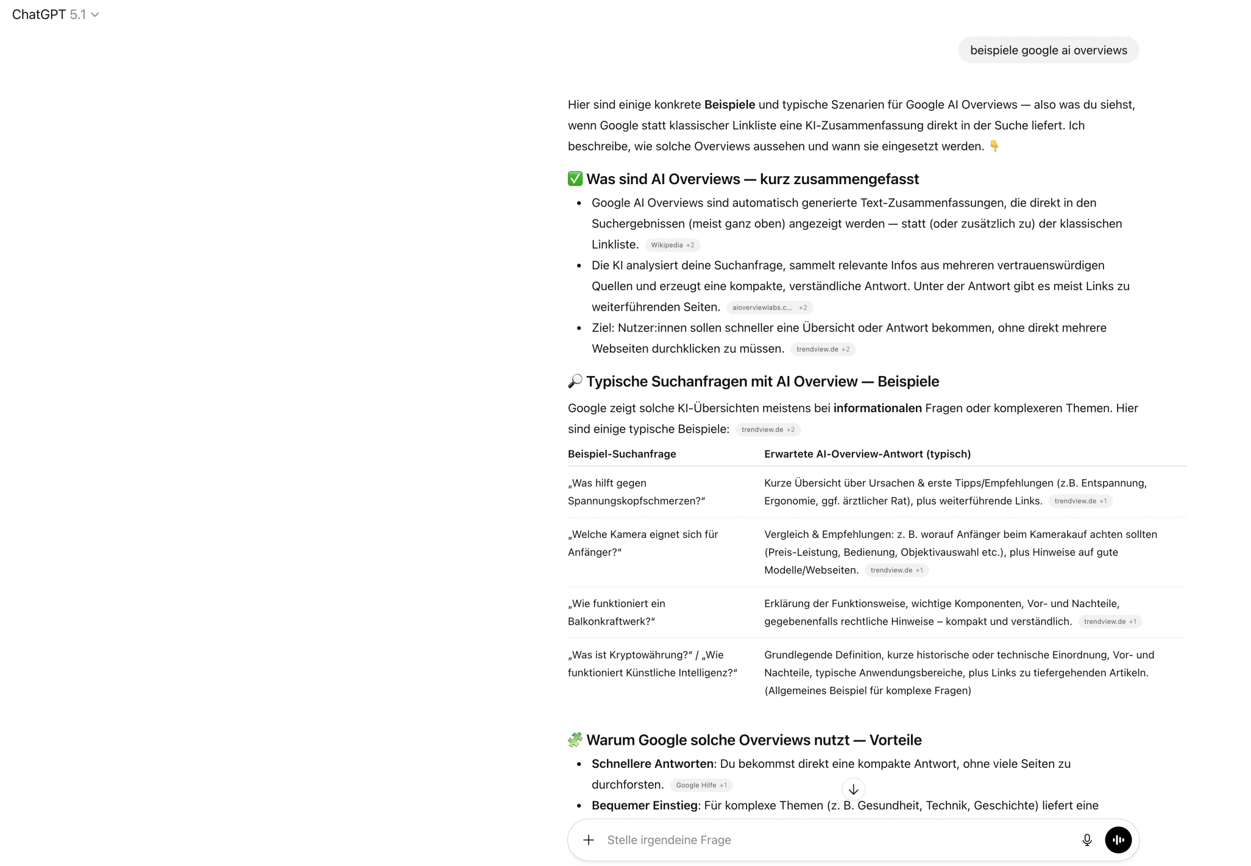 - AI Overviews, AI Mode und ChatGPT: Was ist was?
